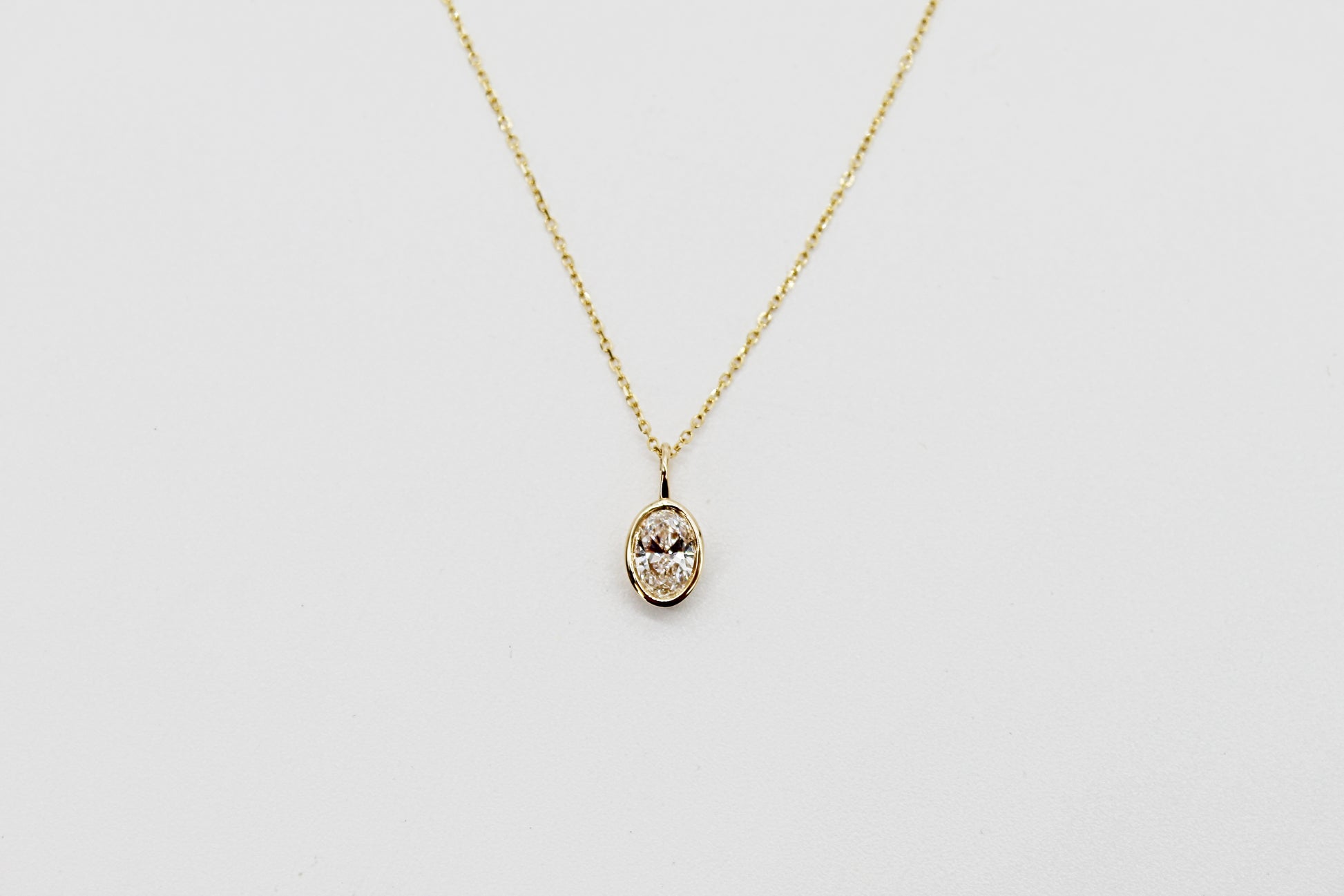 14K 0.75Ct Lab Grown Oval Brilliant Diamond Solitaire Bezel Pendant Necklace Def/Vs