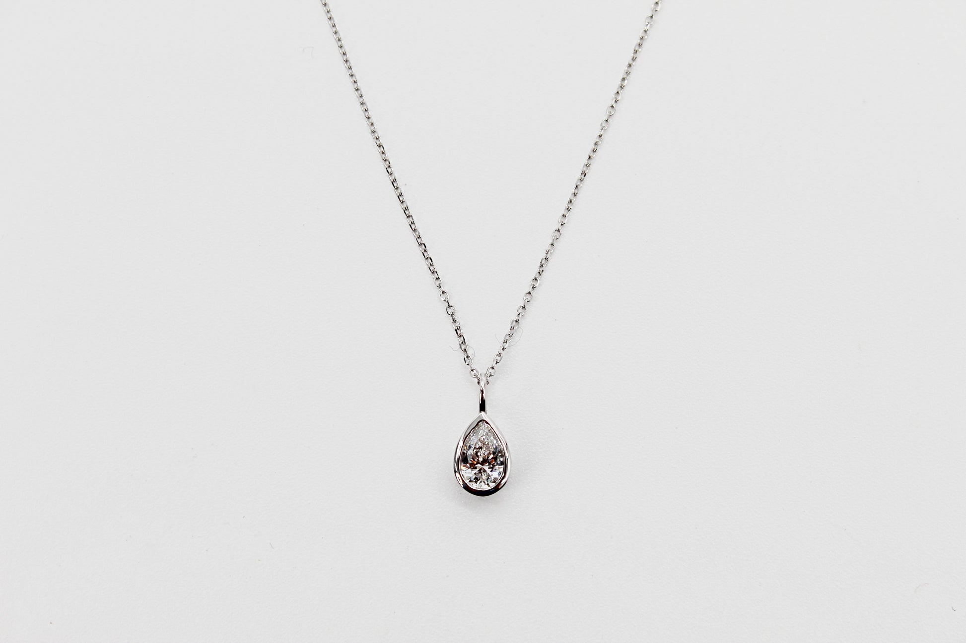 0.75Ct Lab Grown Pear Shaped Diamond Bezel Pendant