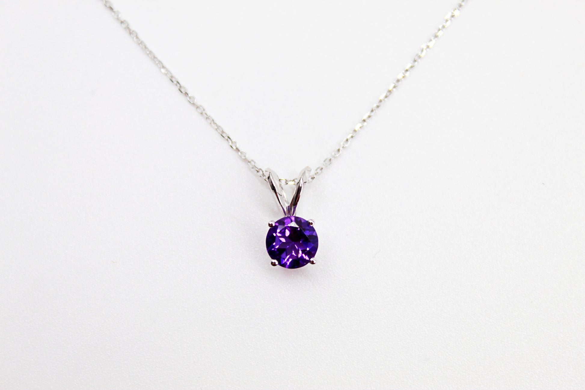 14K White Gold Amethyst Pendant Necklace 0.79Ct
