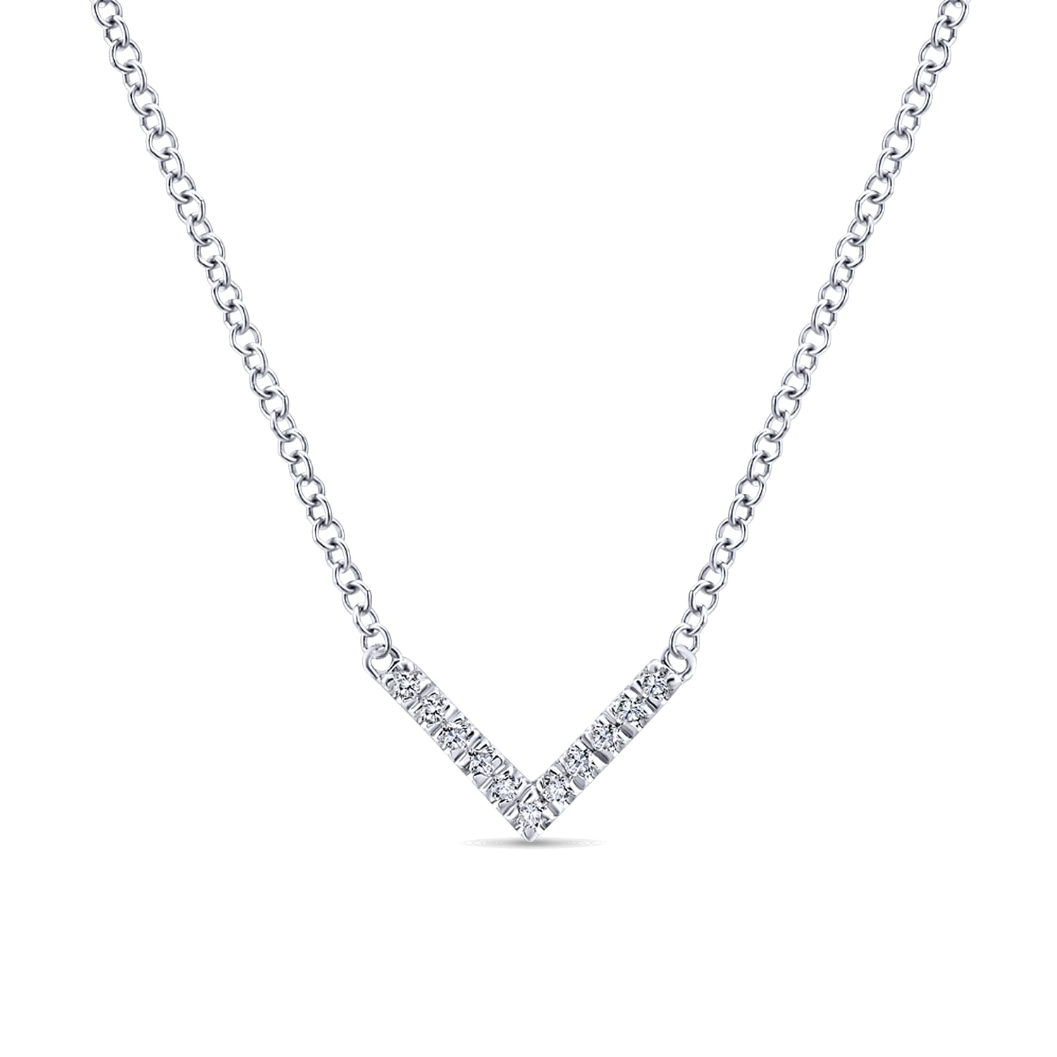 14K White Gold Diamond Chevron Necklace 0.06Ctw Gh/Si