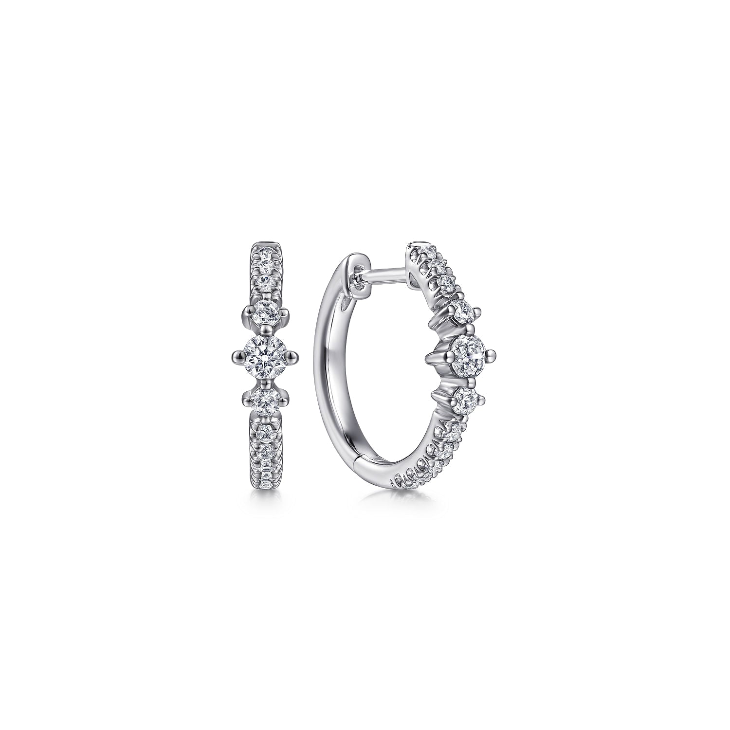 14K White Gold Diamond Huggie Hoop Earrings