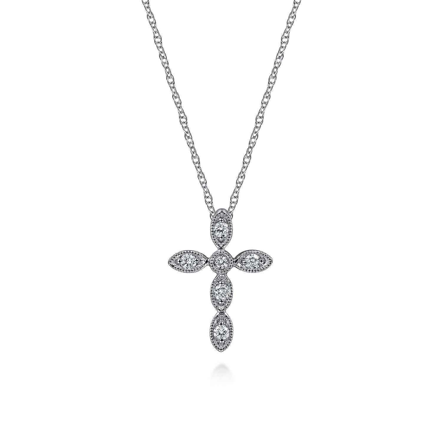 14K White Gold Marquise Shaped Station Diamond Cross Necklace 0.08ctw GH/SI