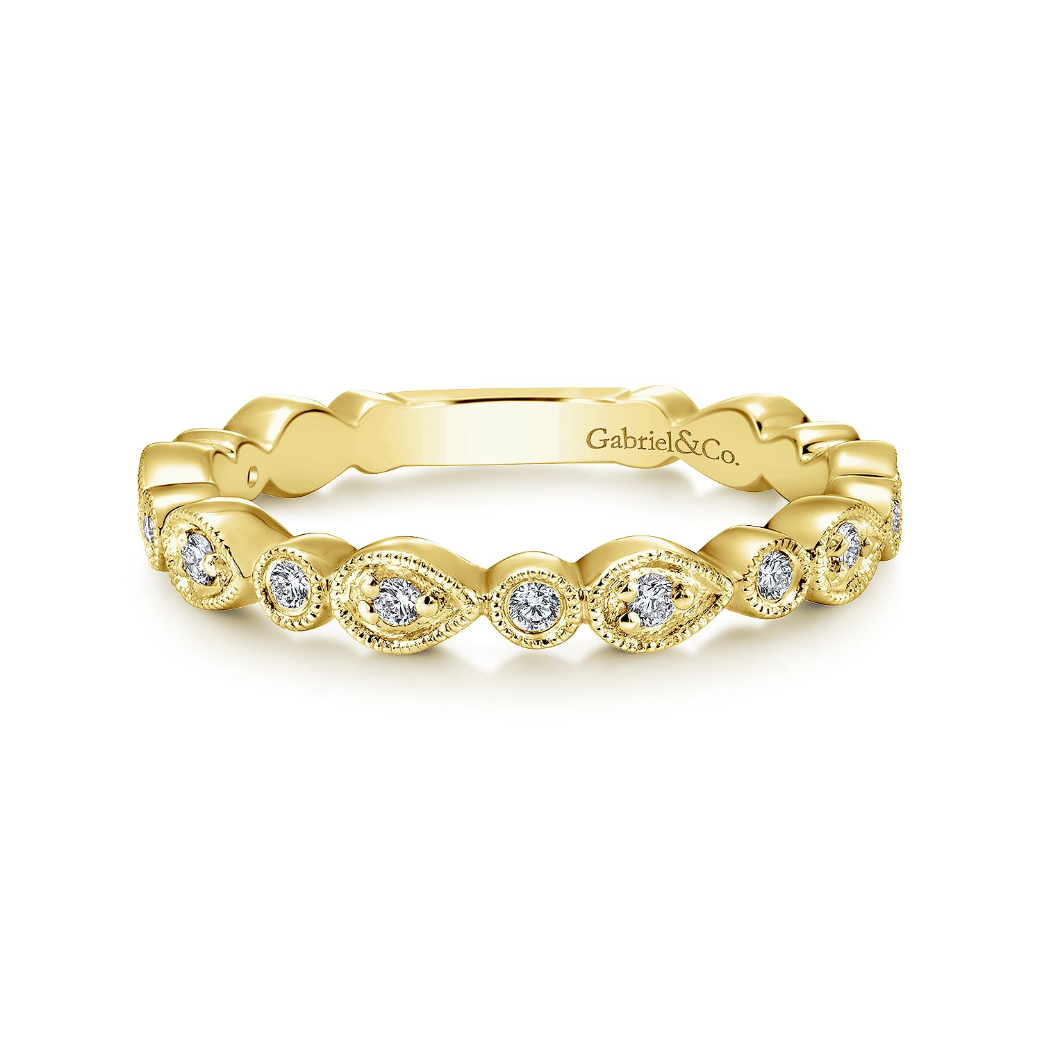 14K White Gold Pear And Round Diamond Milgrain Station Band 0.18Ctw Gh/Si