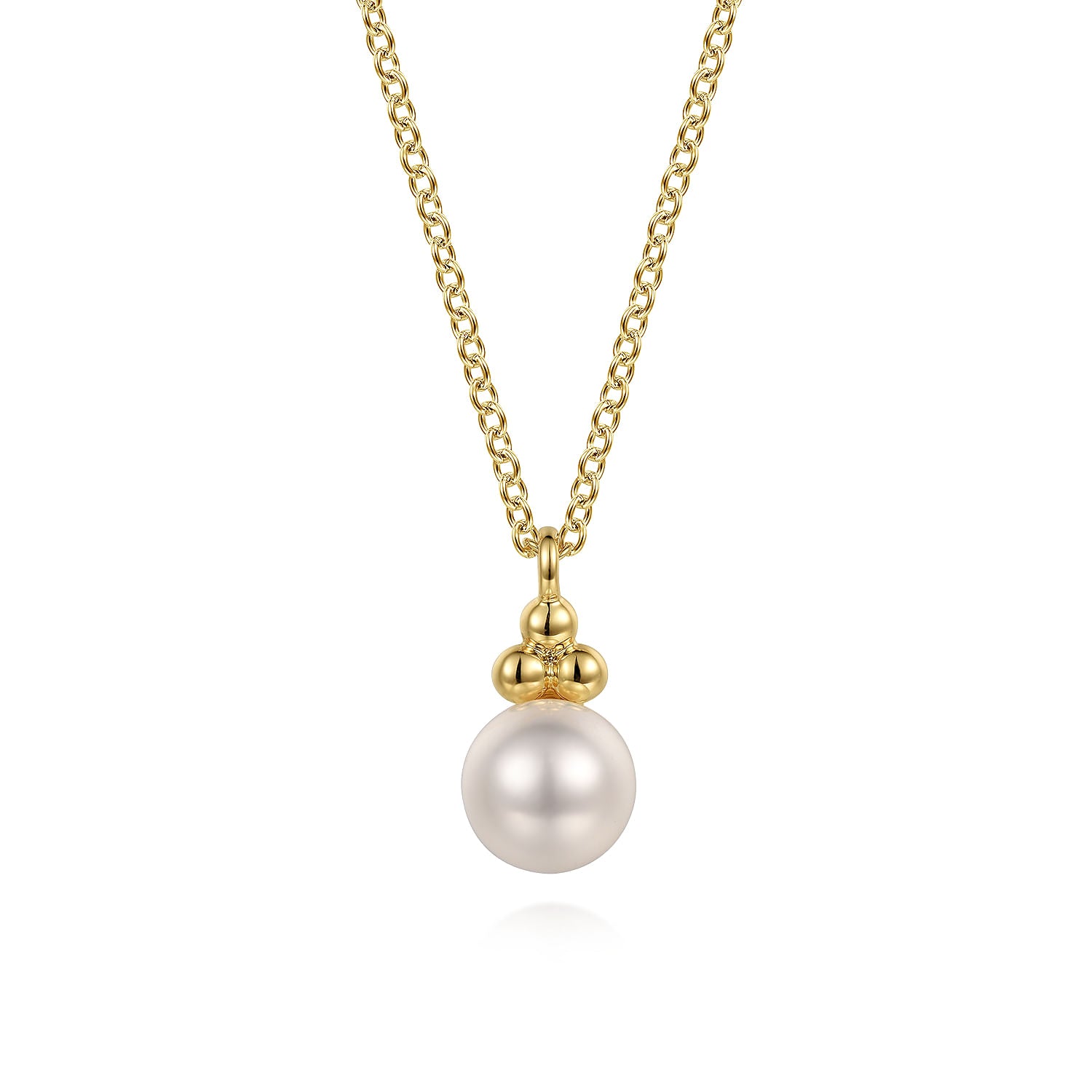 14K Yellow Gold Freshwater Pearl Bujukan Drop Pendant Necklace