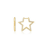 Gold Tone Medium Star Pave Hoop Earrings - Ania Haie