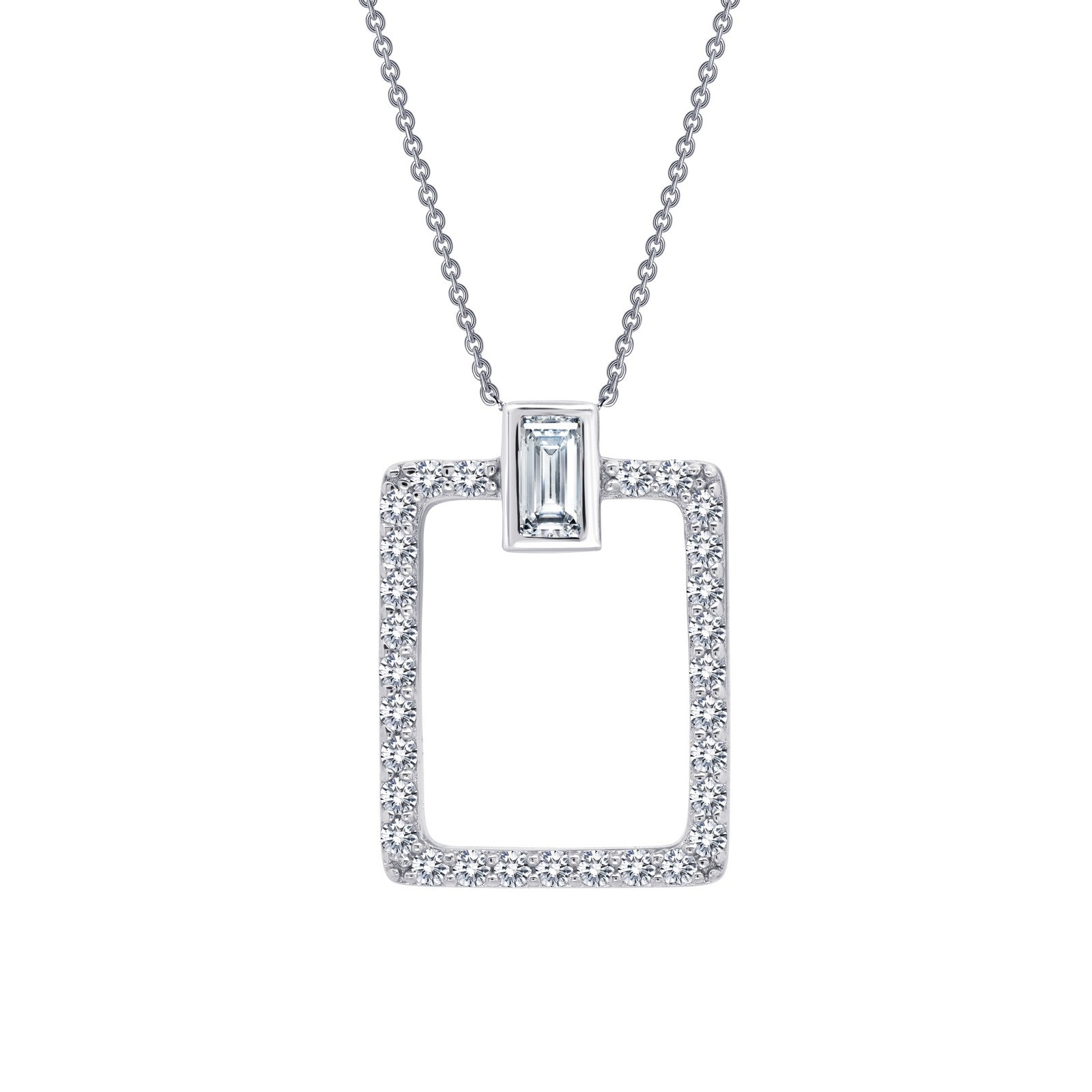 Lafonn Sterling Silver Open Rectangular Simulated Diamond Necklace