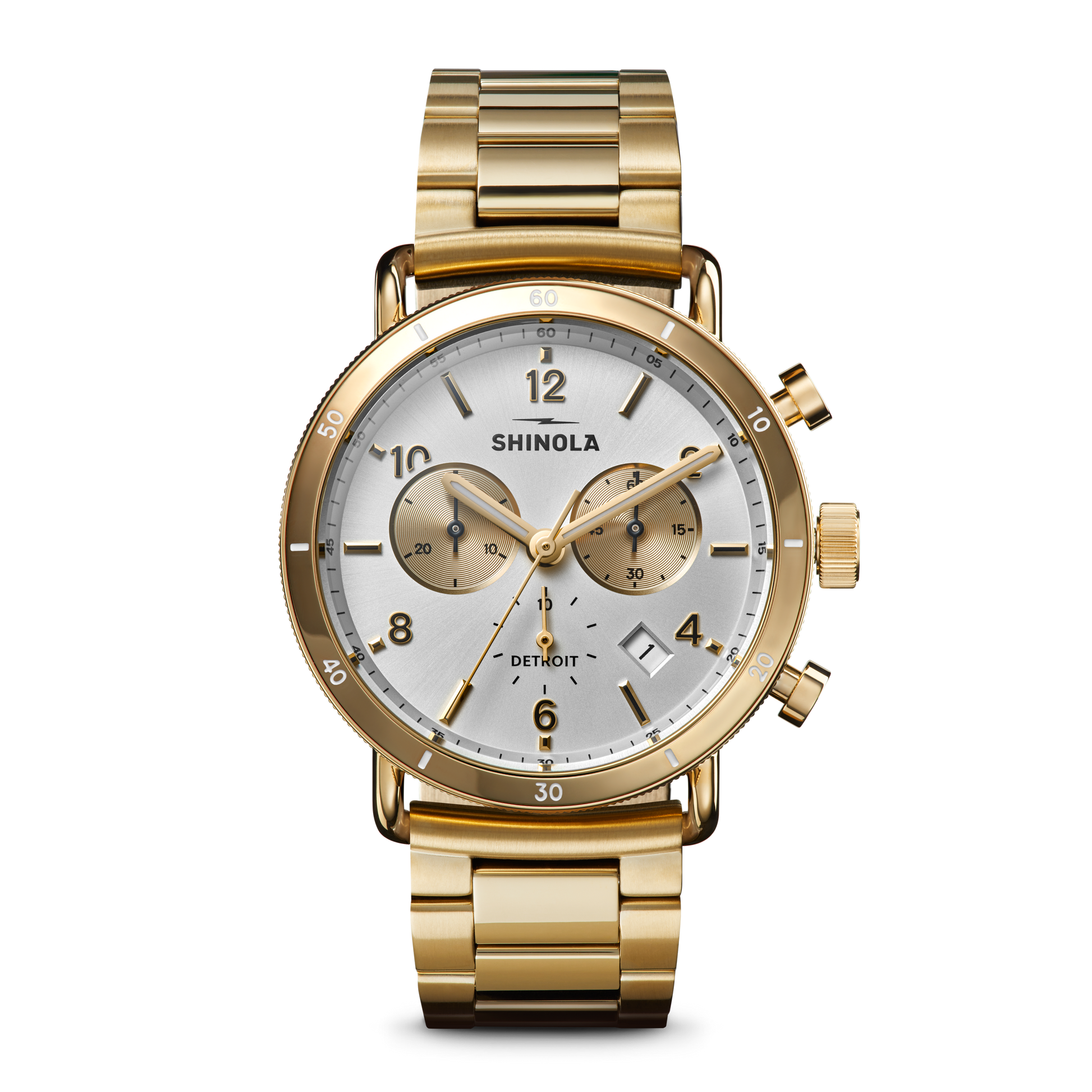 Shinola 40mm Canfield Sport Watch with Silver Dial & Gold Tone Bracelet