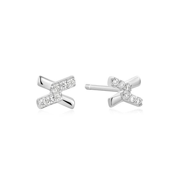 Silver Tone Cross Cubic Zirc Stud Earrings - Ania Haie