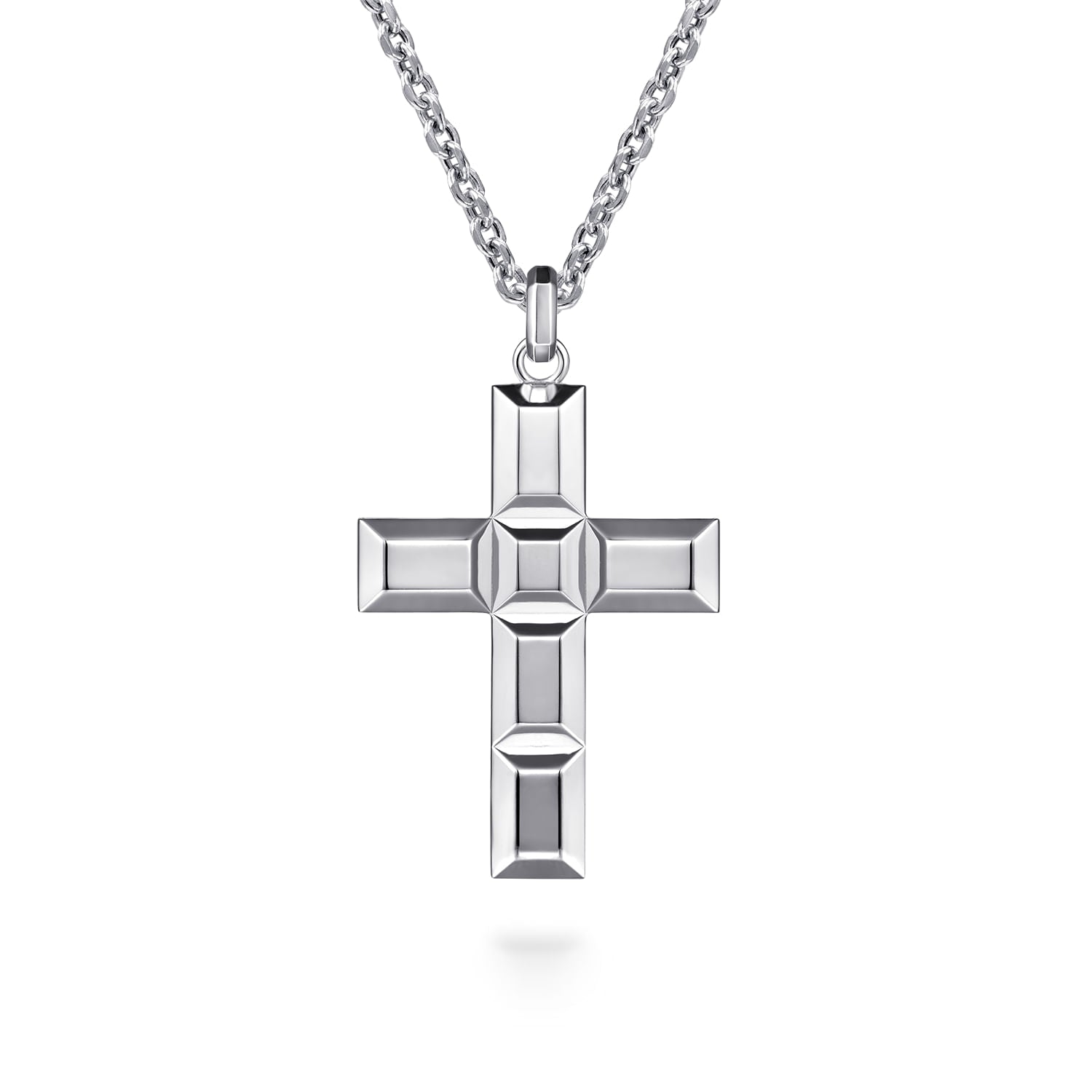 Sterling Silver Geometric Cross Pendant Necklace 22-Inch